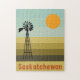This design features a minimalist retro poster of Saskatchewan, Canada.