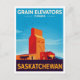 Celebrate the heart of the Canadian Prairies with this bold, vintage-style postcard! It features a striking illustration of a Grain Elevator silhouetted against a bright blue sky, with farm workers and horses below. The retro design and vibrant colors perfectly capture the essential rural landscape of Saskatchewan, Canada. A unique piece of Canadiana and a perfect collectible for farming enthusiasts, history buffs, or fans of mid-century travel art.