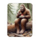 Sasquatch in mossy forest with a cheesecake magnet