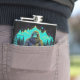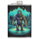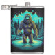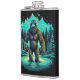 Bigfoot standing in the lake in the woods in black, teal and yellow retro vibes ai art.
