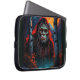 Sasquatch Moonlit Hunt laptop sleeve. A majestic Sasquatch under a glowing orange moon. Set amidst an enchanting forest, with shimmering blue waterfalls cascading in the foreground, this design blends eerie mystery with natural beauty. The creature's piercing gaze and flowing fur are illuminated by the moon's glow, capturing the essence of untamed wildness