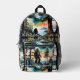 Sasquatch on a Forest Ridge Above Ocean Printed Backpack