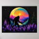 Sasquatch Rainbow Mountain Moon Wall Clock Poster