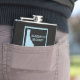 The flask itself is fine. It’s a cheap flask, obviously bought in bulk, however am prepared to overlook that. Given that it is a personalized item, I would have liked to have seen gift boxing instead of the generic packaging. Terrible printing, and/or quality. It’s a cheap, tacky vinyl. It is not cut straight and is also applied in a way that it is overhanging the bottom, causing the glue to catch on items and it will eventually roll and tear, damaging the wrap.