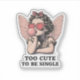 Sweet meets sassy in this whimsical "Dreamscape Nouveau" illustration. This design features a vintage-inspired curly-haired angel blowing a pink bubblegum bubble, complete with iconic heart-shaped shades and the cheeky caption, "Too Cute To Be Single."