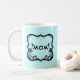 Sweet and feminine Sassy Floral Customisable Mum Mug in periwinkle blue featuring a colourful frame and floral swirl accents. This lovely customisable mug would make a great gift for a special mum! Customise this design with your own text to give it a personalised touch.