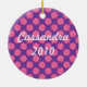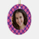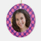 Highlight that special girl in this adorable ornament that can also serve double-duty as a wall hanging or something pretty to hang inside their locker. Pink flowers encircle your own photo against a purple background. Don't forget to customise their name or another message on the back. Available in matching products.