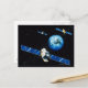 Satellite orbiting earth postcard