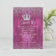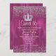 Chic girl's sweet sixteen birthday party invitation done in a orchid pink satin look. Graphics of silver tone glitter and a crown decorate the invitation. All text is ready to personalise for your daughter's special day. Very chic invitation for an elegant party.