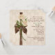 Cream coloured rose bouquet with brown satin bow and pearls for wedding vow renewal invitation.
