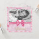 Beautiful elegant and sophisticated Christening cards for baby girl's, with a pretty pink satin bow printed image on a stunning pink/silver damask background and a cute shiny pink and silver border frame, with the word "Christening" at the bottom in beautiful gold writing. Customise the front of your invite with a photograph of your daughter. The reverse has the same printed background, frame and bow and your event details. All text is fully customisable to meet your requirements. If you need help to customise your product please contact me through my store and i will be very happy to help you.