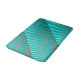 Large scale rows of dots with a satiny gradient shaded from pale aqua to deep pewter grey on a turquoise / peacock background bath mat