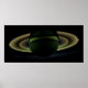 NASA's Cassini spacecraft has delivered a glorious view of Saturn, taken while the spacecraft was in Saturn's shadow. The cameras were turned towards Saturn and the sun so that the planet and rings are backlit. (The sun is behind the planet, which is shielding the cameras from direct sunlight.) In addition to the visual splendour, this special, very-high-phase viewing geometry lets scientists study ring and atmosphere phenomena not easily seen at a lower phase. Since images like this can only be taken while the sun is behind the planet, this beautiful view is all the more precious for its rarity. The last time Cassini captured a view like this was in Sept. 2006, when it captured a mosaic processed to look like natural colour, entitled "In Saturn's Shadow-The Pale Blue Dot" (See PIA08329.) In that mosaic, planet Earth put in a special appearance, making "In Saturn's Shadow" one of the most popular Cassini images to date. Earth does not appear in this mosaic as it is hidden behind the planet. Also captured in this image are two of Saturn's moons: Enceladus and Tethys. Both appear on the left side of the planet, below the rings. Enceladus is closer to the rings; Tethys is below and to the left. This view looks towards the non-illuminated side of the rings from about 19 degrees below the ring plane. Images taken using infrared, red and violet spectral filters were combined to create this enhanced-colour view. The images were obtained with the Cassini spacecraft wide-angle camera on Oct. 17, 2012 at a distance of approximately 500,000 miles (800,000 kilometres) from Saturn. Image scale at Saturn is about 30 miles per pixel (50 kilometres per pixel). The Cassini Solstice Mission is a joint United States and European endeavour. The Jet Propulsion Laboratory, a division of the California Institute of Technology in Pasadena, manages the mission for NASA's Science Mission Directorate, Washington, D.C. The Cassini orbiter was designed, developed and assembled at JPL. The imaging team consists of scientists from the US, England, France, and Germany. The imaging operations centre and team lead (Dr. C. Porco) are based at the Space Science Institute in Boulder, Colo. For more information about the Cassini Solstice Mission visit http://ciclops.org, http://www.nasa.gov/cassini and http://saturn.jpl.nasa.gov. Credit: NASA/JPL-Caltech/SSI Released: December 18, 2012 (PIA 14934)