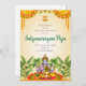 This DIY Satyanarayan invitation digital card, a fusion invite in traditional elegance, is complemented with florals & leaves, perfect for your INDIAN POOJA invite