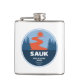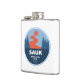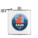 The flask itself is fine. It’s a cheap flask, obviously bought in bulk, however am prepared to overlook that. Given that it is a personalized item, I would have liked to have seen gift boxing instead of the generic packaging. Terrible printing, and/or quality. It’s a cheap, tacky vinyl. It is not cut straight and is also applied in a way that it is overhanging the bottom, causing the glue to catch on items and it will eventually roll and tear, damaging the wrap.