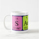 Saundra spelled out as S Au Nd Ra (Sulfur Gold Neodymium Radium) on a mug for the scientist in you.
