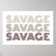 Poster with trendy expression ‘savage’ written out three times in cool dark coloured writing that fades from light to dark.