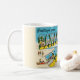 A fun, colourful retro, vintage postcard for Savannah Beach, Georgia repurposed on a mug.