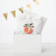 This "A little peach is on the way" baby shower favour bag features a watercolor peach, white florals, and a playful handwritten font. It's perfect for your fruit inspired baby shower. Pair with anything in the SAVANNAH Collection for a cohesive look.