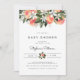 This baby shower invitation features watercolor peaches, white florals, and a whimsical script font. Easily edit all wording for your baby shower, bridal shower, couples shower, etc.