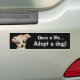 A bumper sticker featuring a cartoon digital illustration of a cute little tan coloured mongrel puppy with huge sad brown eyes and the phrase "Save a life... Adopt a dog!"