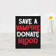 Save A Vampire Donate Blood Halloween Costume Card