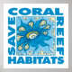 Environmental design in beautiful ocean blue colours. Advocates to protect, preserve coral reef habitats. Wildlife species - endangered, threatened or not - need help! Nice gifts for eco-friendly folks