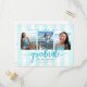 Make sure all your friends and relatives will be able to celebrate your daughter’s milestone graduation! Send out this stunning, simple, modern, girly, personalised three photo “Save the Date” postcard for an event to remember. Sparkly turquoise typography script overlays a baby turquoise blue and white striped background with tiny turquoise and gold confetti dots. Add three photos of your choice and personalise the custom text with your graduate’s name, school name and date. Your custom message, a turquoise blue graduation cap icon and your return address adorn the back. Matching invites, thank you cards, cap toppers, napkins, plates and other graduation goodies are also available in this trendy and stylish collection. Guaranteed to add stylish fun to her special occasion!