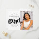 Make sure all your friends and relatives will be able to celebrate your graduate’s milestone graduation! Send out this stunning, simple, modern, personalised photo “Save the Date” postcard for an event to remember. Bold, graphic, black typography overlays a white background. On the right hand side, add a photo of your choice. Personalise the custom text with your graduate’s name, class year and date. Your custom message, a graduation cap icon and your return address adorn the back. Matching invites, thank you cards, cap toppers, napkins, plates and other graduation goodies are also available in this trendy and stylish collection. Guaranteed to add stylish fun to their special occasion!