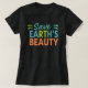 The t-shirt design features the text "Save Earth's Beauty" in a multicolor scheme that promotes environmental awareness and the importance of protecting the planet's natural wonders. Here are some details to consider: