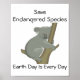 This design features a cute koala clinging to a tree with the text "Save Endangered Species" and "Earth Day is Every Day" in black lettering.