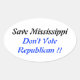 Save Mississippi, Don't Vote Republican. Oval Sticker