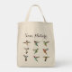 Tote bag featuring several hummingbird species native to North America, such as Allan's Hummingbirds, Anna's, Rufous, Ruby-throated, Black-chinned, Broad-billed and Costa's Hummingbirds.