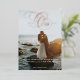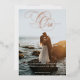 This beautiful save the date card features an elaborate flourished script of the word Our in the phrase "Save Our Date" in real rose gold foil accenting a full page photo. The couple's names and the wedding date and location are displayed along the bottom of the save the date card. The back of the card has an additional photograph and a wedding website. This sophisticated save the date card is perfect for adding a touch of glamour. For more formal affairs, the back of the card could be left blank.