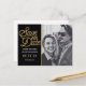 Nontraditional Save our Date Wedding postcard has a modern gold script against a black background. Your black and white photo is complimented with this bold announcement.