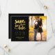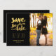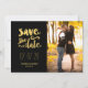 These Faux Gold Foil and Black Modern Photo Save the Date Card with bold script typography are a nice combination of glamour and fun. . Elke Clarke ©