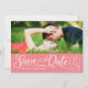 Postcard announcement of your wedding date. Use your full horizontal image with "Save our Date" on a coloured background. Customise your names and date on front and back.