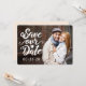 Postcard announcement of your wedding date. Use your full horizontal image with "Save the Date" superimposed on the photo. Optional dark gradient for white script to stand out if your background is too light. Just remove the gradient if you don't need it. Backside colour is customisable.