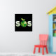 A modern green earth design showing the world in green with a leaf on top to represent a fruit. Spells out SOS in hopes of saving our planet from pollution.