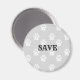 Cute white paws on silver background round magnet. SAVE text can be personalised. All animals need voices and gentle hearts who care about them. Let's spread kindness!