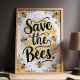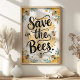Promote the crucial message of bee conservation with this charming "Save the Bees" wall art. The design features bold hand-lettered script surrounded by bees, flowers, and honeycomb patterns in warm yellows and greens, perfect for nature lovers and eco-conscious individuals. This artwork is ideal for home decor, classrooms, or as a thoughtful gift, serving as a vibrant reminder of the vital role bees play in our ecosystem.