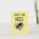 Help save the bees! They are disappearing at an alarming rate. On the front is a vintage image of a bee. Inside is blank for your notes/greeting and both pages are tinted yellow. On the back is information on how to help save the bees.