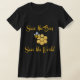 This environmental design features a honey bee flying by a honeycomb and the caption "Save the Bees Save the World." Save the honey bees. No pesticides.