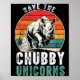 Save The Chubby Unicorns Funny Retro Rhino Animal Poster