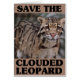 A close up of a beautiful clouded leopard with the words Save The Clouded Leopard surrounding it.