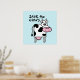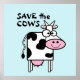 Promote your cause with this adorable smiling cow against a light blue background. The text "Save the cows" may be customized if you wish to edit the slogan. The light blue background color is also customizable to the color of your choice. In addition to animal rights enthusiasts, this poster is also a good choice for people who simply fancy cows.