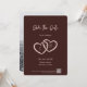 Save the Date 2 Hearts Intertwined with Initials Invitation to make a simple yet elegant statement. This minimalist wedding announcement card, in the colours Dark Sienna and Light Dust Storm, features a design of two hearts, each holding one of the bride's initials and one of the groom's initials, with an overlapping centre featuring a plus sign. The card includes essential information such as the wedding date, location, a QR code for more details, and the website address. The reverse side showcases an image of the couple-to-be with their names. Customise the text, image, and QR code to make it uniquely yours. For more wedding planning inspiration, visit www.KBMD3signs.com. For custom design enquiries or assistance, contact us at info@KBMD3signs.com.