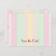 Pastel stripes decorate this classy 50th Birthday "Save the Date" postcard. Both sides have deep purple lettering. Very classy! You can easily change the text for name, age, date, location, etc. Matching postage stamp for postcards is zazzle product 172369265050547052. All Rights Reserved © 2014 Alan & Marcia Socolik.