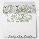 Send out your 5X7 Save the Date cards in style. This chic envelope features your pre-printed name and address on the back flap along with Save the Date in a trendy script font along the bottom. A soft sage green and white botanical print lines the inside of the envelope. This Save the Date envelope is part of the Summer Romance collection. It contains all the DIY templates you need to create your Save the Date stationery suite. You should see a link to it on this page. If you don't see it or need help with an item, please contact me.
