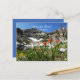 Our photograph of beautiful mountain scenery with an icy lake and colourful wildflowers decorates this 65th Birthday "Save the Date" postcard announcement. The reverse has white lettering on a blue background. Very elegant and classy! You can easily change the text for name, event type, date, etc. Original photograph by Alan Socolik, hiking in Nevada. All Rights Reserved © 2015 Alan & Marcia Socolik.